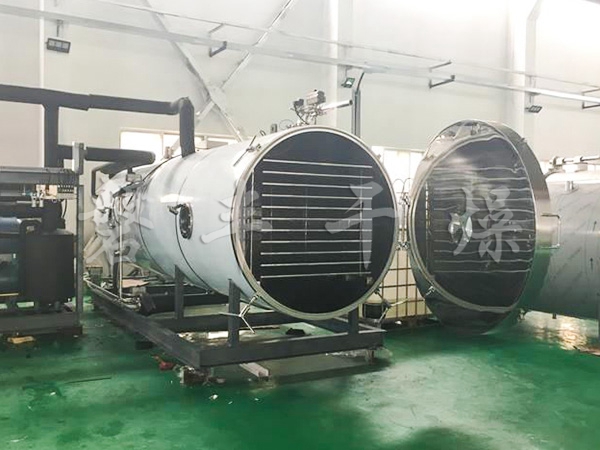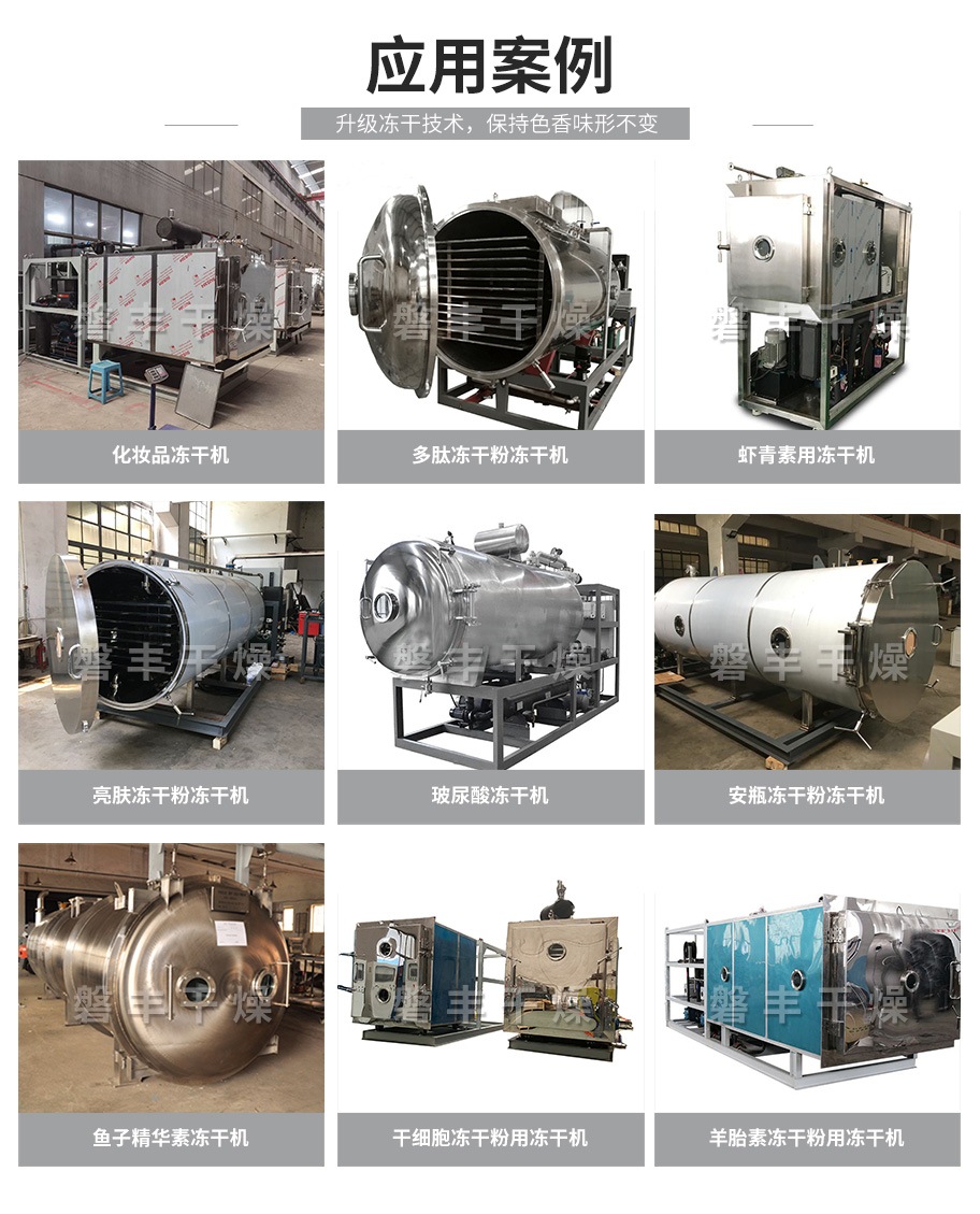 開機(jī)后將物料投入物料箱內(nèi)進(jìn)行冷凍.物料的冷凍過程.一方面是真空系統(tǒng)進(jìn)行 抽真空把一部分水份帶走;另一方面是物料受凍時(shí)把某些分子中所含水份排到物 料的表面凍結(jié).達(dá)到冷凍要求后,由加熱系統(tǒng)對(duì)物料加熱干燥,通過抽真空把物料 中所含的水份帶到冷凍捕集箱結(jié)凍,達(dá)到物料冷凍干燥要求。